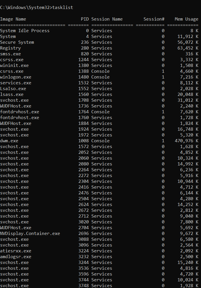 This makes tasklist a powerful tool for system administrators and developers who need quick insights into what is happening on the machine.