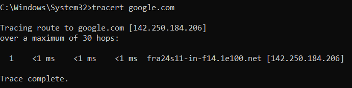• The trace shows that the packets reached the target in just 1 hop with a response time of <1ms.